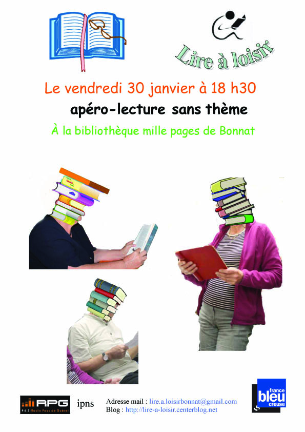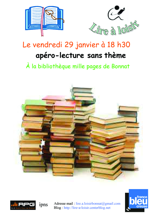 Lors de notre Assemblée Générale du 16 janvier, nous avons décidé que les apéros-lecture se dérouleraient désormais uniquement le dernier vendredi de chaque mois.